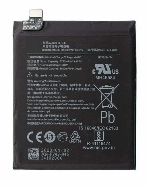 View full detailsAftermarket Compatibleย Battery forย OnePlus 7T -ย Model Number:ย BLP743 -ย Capacity:ย 3725mAh