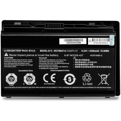 Specifications: Battery Type: Li-ion Voltage: 14.8V Capacity: 5200mAh / 76.96Wh Compatible Model:ย ย Replace Battery Part Number: For CLEVO 6-8...