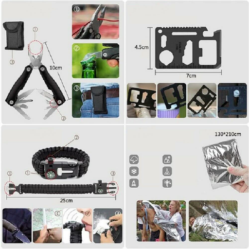 Feature: - Multi-Purpose Updated Tactics Kit.multi professional emergency survival kits. Containing: scraper, flashlight, mini light, updated comp...