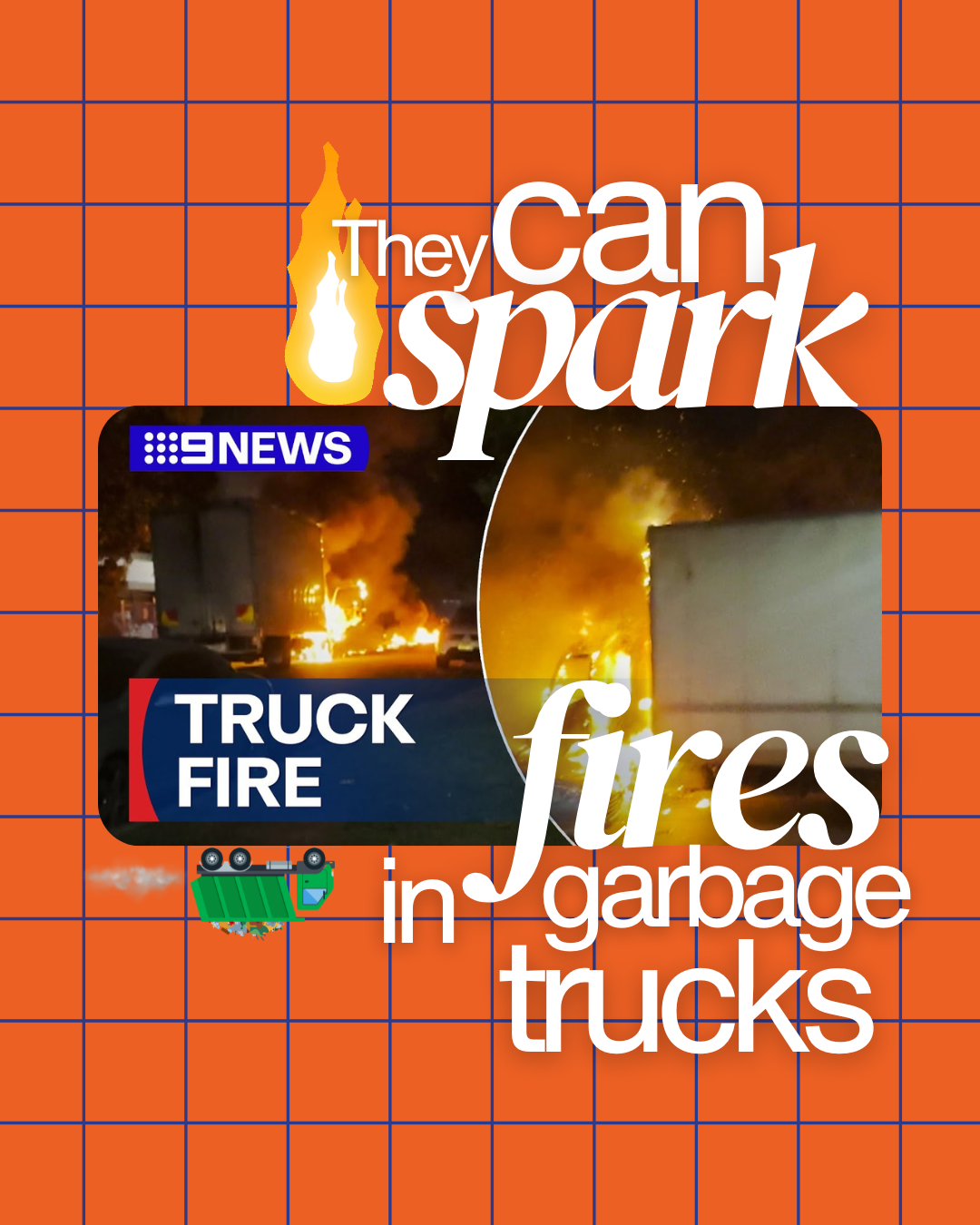 Rechargeable batteries and lithium-ion batteries are hazardous and could produce sparks that may start a fire in the trucks or recycling facility.ย
