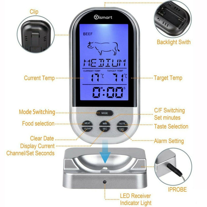 Food Meat Oven BBQ Thermometer Digital Wireless Remote Probe Cooking Set Grill