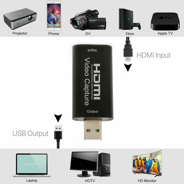 HDMI to USB Video Capture Card Screen Record 1080P HD Game Video Live Streaming Recorder