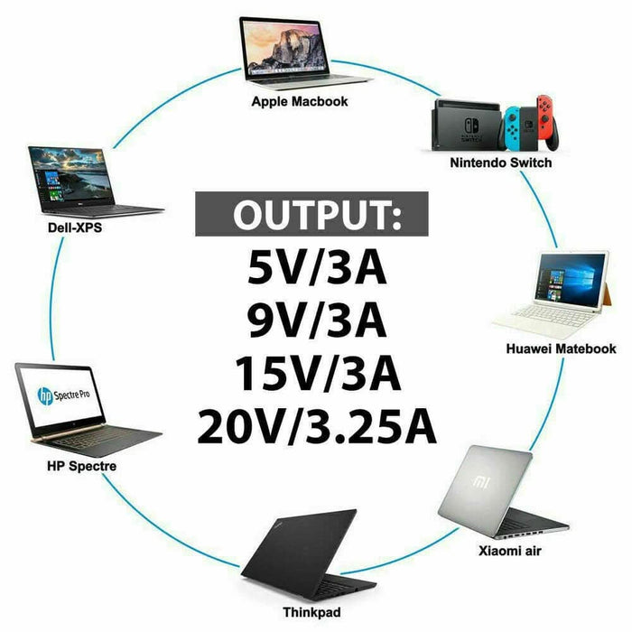 Suitable for laptops, tablets, and smartphones that support USB-C chargingâincluding models from HP, Lenovo, Dell, Acer, Asus, and Toshiba.