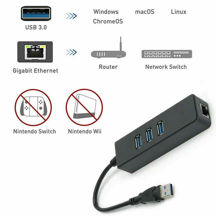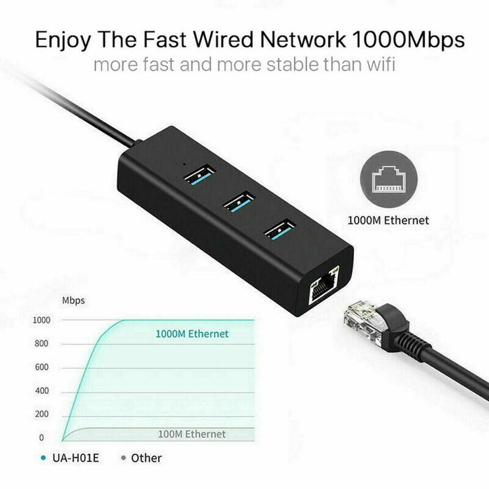 USB 3.1 to HUB 3 Port & RJ45 Gigabit Ethernet Adapter 3.0 USB-C PC MAC